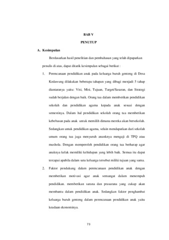 Hasil penelitiannya adalah : (1) proses perencanaan pendidikan anak pada keluarga buruh genteng di Desa Kedawung yang terdiri dari visi perencanaan pendidikan anak, misi membuat perencanaan pendidikan, tujuan dalam