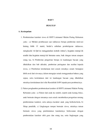 ustadz datang lebih awal daripada muridnya,ustadz, menggunakan bahasa yang tepat dan mudah diterima, serta menggunakan bahasa yang santun, sedangkan keteladanan isi kandungan bacaan yang dihafalkan yaitu sifat santun Rasulullah SAW kepada para pembencinya. 2) Faktor penghambat pembentukan karakter siswa di SDIT Lukmanul Hakim