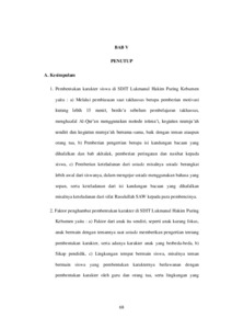 Puring Kebumen yaitu a. Faktor anak itu sendiri seperti karakter masing-masing anak yang berbeda dan anak kurang fokus, b. Sikap pendidik, dan c. Lingkungan tempat bermain yaitu anak temannya mempunyai kebiasaan yang berlawanan dengan pembentukan karakter di sekolah dan di rumah.