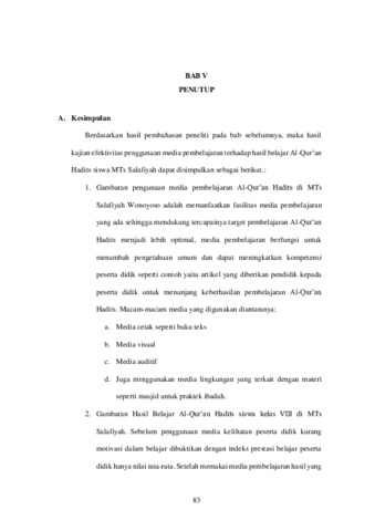 Media pembelajaran merupakan perantara yang dapat menyampaikan informasi materi Al-Qur’an Hadits yang bersifat abstrak kepada peserta didik yang masih berada pada tahap berfikir konkrit. Jenis penelitian yang digunakan adalah
