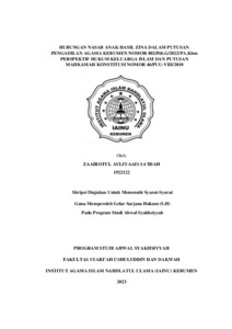 ZAAIROTUL AULIYAAIS SAIDAH, NIM.1922122 and Abdul Waid,S.H.I., M.S.I, . (2023) HUBUNGAN NASAB ANAK HASIL ZINA DALAM PUTUSAN PENGADILAN AGAMA KEBUMEN NOMOR 802/Pdt.G/2022/PA.Kbm PERSPEKTIF HUKUM KELUARGA ISLAM DAN PUTUSAN MAHKAMAH KONSTITUSI NOMOR 46/PUU-VIII/2010. Diploma thesis, Institut Agama Islam Nahdlatul Ulama ( IAINU) Kebumen.