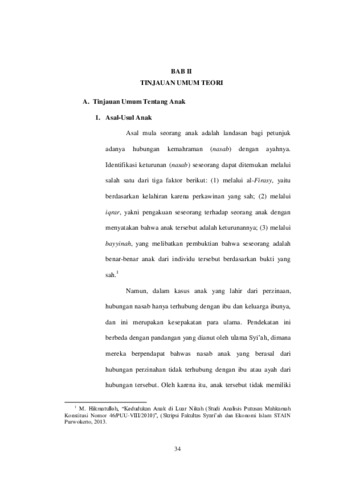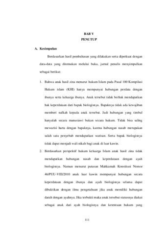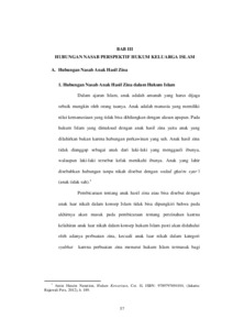 Skripsi ini bertujuan untuk mengetahui hubungan nasab (kekerabatan) terhadap anak hasil zina. Bahwa anak hasil zina dalam pandangan hukum keluarga Islam hanya memiliki hubungan secara keperdataan dan nasab dari