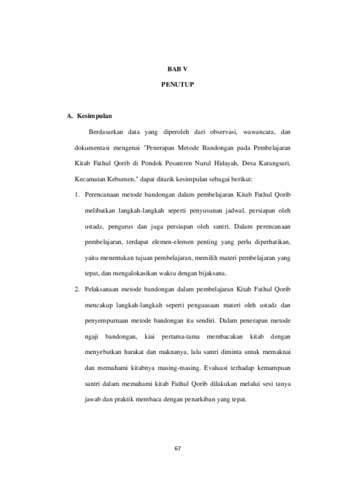 Pembelajaran Kitab Fathul Qorib diterapkan di Pondok Pesantren Nurul Hidayah, dimana dalam pembelajarannya membahas seputar hukum-hukum fikih Islam, yang mana nantinya akan diterapkan di masyarakat. Dalam sistem pembelajarannya, bukan hanya menggunakan sistem bandongan (mendengarkan) saja, akan tetapi disini seorang santri di tuntut untuk bisa memahami serta mengaplikasikannya bahkan dianjurkan untuk bisa membaca kitab secara langsung dan menjelaskan isi dari kitab tersebut. Adapun proses pendekatan pembelajaran diantaranya adalah perencanaan, pelaksanaan dan evaluasi, jadi pembelajaran akan maksimal jika dari ketiga proses tersebut sudah terlaksana. Fokus penelitian yang diteliti dalam skripsi ini adalah: (1) Bagaimana Perencanaan Metode Bandongan di Pondok Nurul Hidayah? (2) Bagaimana Pelaksanaan Metode Bandongan di Pondok Pesantren Nurul Hidayah? Tujuan penelitian ini adalah: (1) Untuk mengetahui Bagaimana Perencanaan Metode Bandongan di Pondok Pesantren Nurul Hidayah. (2) Untuk mengetahui Bagaimana Pelaksanaan Metode Bandongan di Pondok Pesantren Nurl Hidayah. Metode yang dipakai dalam penelitian ini adalah metode penelitian kualitatif. Pendekatan yang digunakan yaitu pendekatan kualitatif dengan jenis deskriptif. Teknik pengumpulan data menggunakan wawancara, observasi dan dokumentasi. Dan keabsahan datanya menggunakan triangulasi teknik dan triangulasi sumber. Hasil temuan penelitian ini yaitu 1). Perencanaan Metode Bandongan yaitu: a). Penyusunan perencanaan metode bandongan. b). Penyusunan jadwal pembelajaran, penentuan jadwal ini disepakati oleh segenap elemen pesantren. Yakni, satu kali dalam seminggu yaitu hari Sabtu malam Minggu 2). Pelaksanaan Metode Bandongan yaitu: a). Persiapan ustadzah untuk ustadzah berisi targettarger materi kitab yang harus dicapai serta persiapan santri untuk persiapan santri mempersiapkan materi yang akan dibahas. Penguasaan materi hal utama yang perlu dikuasai yaitu, santri bisa memahami dan membaca serta menjelaskan materi yang diterapkan. b). Metode pembelajaran kitab metode yang digunakan yaitu metode bandongan. c). Inti pembelajaran yang berisi tentang pengenalana kitab, rutinitas pembelajaran dan evaluasi pembelajaran.