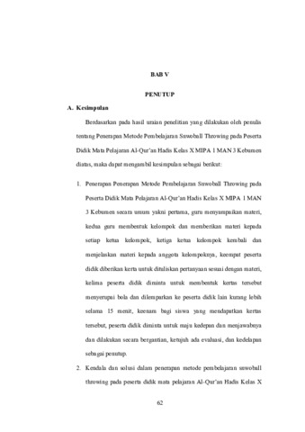 Tujuan Penelitian adalah: (1) untuk mendeskripsikan penerapan metode pembelajaran Snowball Throwing pada peserta didik mata pelajaran Al-Qur’an Hadis di Kelas X MIPA I MAN 3 Kebumen; (2 ) untuk mendeskripsikan kendala dan solusi penerapan metode pembelajaran Snowball Throwing pada peserta didik mata pelajaran Al-Qur’an Hadis di Kelas X MIPA I MAN 3 Kebumen. Penelitian ini menggunakan pendekatan penelitian kualitatif dengan jenis penelitian deskriptif analitik yaitu peneliti berusaha untuk menguraikan secara mendalam tentang bagaimana penerapan penerapan metode pembelajaran dengan model snowball throwing pada mata pelajaran Al-Qur’an Hadis kelas X MIPA 1 MAN 3 Kebumen. Siswa yang diteliti adalah siswa kelas X MIPA 1 MAN 3 Kebumen dengan jumlah 25 peserta didik. Dalam pengumpulan data peneliti