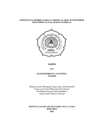 Kuni Barorotul Lovenida, 19116696 and Mustajab, M.Pd.I., 2130018601 (2023) Efektivitas Pembelajaran Tahfidz Al Qur’an di Pondok Pesantren Al-Falah Balo Gesikan. Other thesis, Institut Agama Islam Nahdlatul Ulama ( IAINU Kebumen).