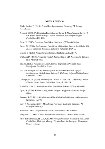| Uncontrolled Keywords: | Implementasi, Pendidikan,Akidah Akhlak, Peserta didik, covid 19 |