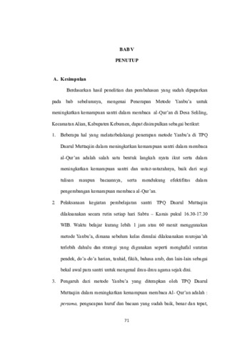 | Uncontrolled Keywords: | Metode Yanbu’a, Kemampuan Santri, Membaca al-Qur’an |