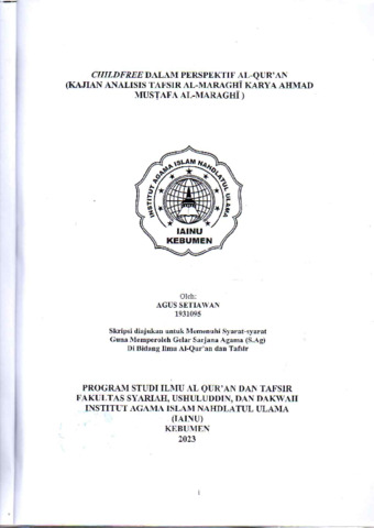 Agus Setiawan, 1931095 and Isti'anah, M.A., 2120078001 (2023) Childfree dalam Perspektif Al-Qur‟an (Kajian Analisis Tafsir Al-Maraghī Karya Ahmad Musțafa Al-Maraghī). Other thesis, Institut Agama Islam Nahdlatul Ulama ( IAINU Kebumen).