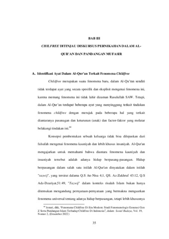 | Uncontrolled Keywords: | Childfree, Al-Qur‟an, azwajan, childfree, Tafsir Al Maraghȋ, keberlanjutan, Q.S. An-Nahl 16:72, Q.S Ar-Rum 30:21 dan Q.S Asy-Syura (42): 11 |