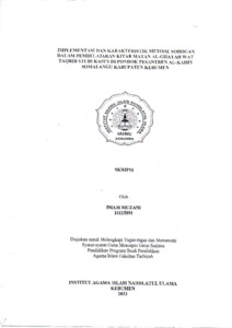 Imam Muzani, NIM. 16115891 and Nurhidayah, M.Pd., 2101068201 (2023) Implementasi dan Karakteristik Metode Sorogan dalam Pembelajaran Kitab Matan Al-Ghayah Wat Taqrib Studi Kasus di PondokPesantren Al-Kahfi Somalangu Kabupaten Kebumen. Other thesis, Institut Agama Islam Nahdlatul Ulama ( IAINU Kebumen).