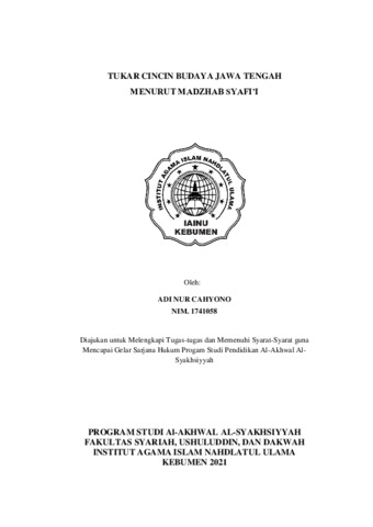 Adi Nur Cahyono, NIM. 1741058 (2021) Tukar Cincin Budaya Jawa Tengah Menurut Madzhab Syafi’i. Other thesis, Institut Agama Islam Nahdlatul Ulama ( IAINU Kebumen).
