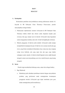 | Uncontrolled Keywords: | Metode Al-Insyirah, Kemampuan Membaca Al-Qur’an, Siswa MI Kelas 6, MI Tarbiyatul Ulum Tirtomoyo Poncowarno |