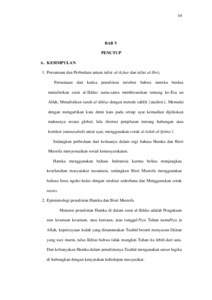 Alasan penulis meneliti penelitian ini adalah Pertama apa perbedaan dan kesamaan penafsiran Hamka dan Bisri Mustofa tentang penafsiran surat Al-Ikhlas? kedua bagaimana relevan penafsiran mereka berdua tentang surah al-Ikhlas ? Adapun tujuan dalam peneliti ini adalah untuk memaparkan dan menjelaskan data penafsiran Hamka dan Bisri Mustofa sebagai salah satu wacana bagi umat islam terkait dengan berbagai penafsiran yang muncul pada zaman dahulu sampai sekarang. Agar masyarakat untuk dirasionalkan. kemudian dalam penafsiranya tidak mengabaikan kaidah-kaidah yang berlaku dalam ilmu tafsir yang telah disepakati oleh para ulama tafsir. Dalam menjawab ermasalahan di atas, peneliti ini menggunakan jenis penelitian kepustakaan (ribrary research) dengan metode penyajian data secara Deskritif dan Analitis. Deskriptif Analitis adalah memaparkan bagaimana kedua mufasir menafsirkan surah al-Ikhlas dalam al-Qur‟an kemudian membandingkan pendapat keduanya dalam penafsiranya. Hamka dan Bisri Mustofa beliau berdua sama-sama menafsirkan surat al-Ikhlas dengan metode tahlili (analisis). Beliau berdua memulai dengan mengartikan kata demi kata pada setiap ayat kemudian dijelaskan maknanya secara global, lalu disertai penjelasan tentang hubungan atau korelasi (munasabah) antar ayat. Terkadang juga ada asbab al-Nuzul (sebab-sebab turunnya ayat) serta hadis-hadis dari Rasulullah, Sahabat, Tabi‟in sebagai dalil atau penjelasan tambahan dan pendapatnya juga beliau sertakan dalam kitab Tafsir. Adapun perbedaan Hamka dan Bisri Mustofa dalam menafsirkan surah al-Iklas yaitu dalam segi bahasa, Hamka berbahasa indonesia sedangkan Bisri Mustofa berbahasa jawa ngoko halus