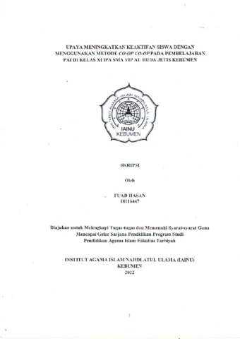 FUAD HASAN, NIM. 18116447 and Dr. Eliyanto, M.Pd.I., 2108058801 and Fibriyan Irodati, M.Pd.I., 2120029101 (2022) Upaya Meningkatkan Keaktifan Siswa dengan Menggunakan Metode Co-Op Co-Op pada Pembelajaran PAI di Kelas XI IPA SMA VIP Al Huda Jetis Kebumen. Other thesis, Institut Agama Islam Nahdlatul Ulama ( IAINU Kebumen).