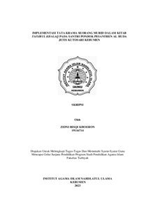 Zidni Risqi Khoeron, NIM. 19116714 and Dr. H.M Bahrul Ilmie, S.Ag., M.Hum., 2121037101 (2023) Implementasi Tata Krama Seorang Murid Dalam Kitab Taisirul Khalaq Pada Santri Pondok Pesantren Al-Huda Jetis, Kutosari, Kebumen. Other thesis, Institut Agama Islam Nahdlatul Ulama ( IAINU Kebumen).