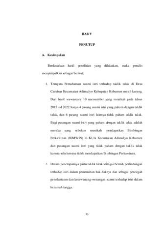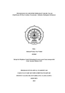 Akhmad Wahyu Nur Wahid, NIM. 1822065 and Dr. Slamet Mujiono, S.Ag., M.Hum., 2107076601 and Abdul Waid, S.H.I., M.S.I., 2112075401 (2023) PEMAHAMAN SUAMI ISTRI TERHADAP TAKLIK TALAK (Studi Kasus Di Desa Caruban Kecamatan Adimulyo Kabupaten Kebumen). Other thesis, Institut Agama Islam Nahdlatul Ulama ( IAINU Kebumen).