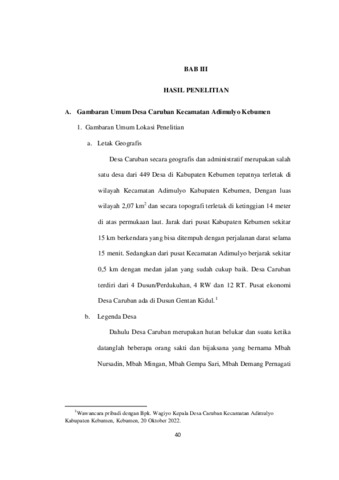 turun ke lapangan untuk mengetahui kondisi yang sebenarnya dan akan berhadapan secara langsung dengan objek dari penelitian ini, yaitu suami istri yang menikah pada tahun 2015 s.d 2022 di Desa Caruban Kecamatan Adimulyo Kabupaten Kebumen. Penelitian ini menggunakanpendekatan yuridis empiris. Pendekatan yuridis empiris adalah penulis mengidentifikasi dan mengkonsepsikan hukum sebagai institusi sosial yang riil dan fungsional dalam sistem kehidupan yang nyata, menekankan penelitian yang bertujuan memperoleh pengetahuan hukum secara empiris dengan jalan terjun langsung ke obyeknya. Adapun metode yang digunakan peneliti adalah metode wawancara, dokumentasi dan analisis data. Berdasarkan hasil dari penelitian ini yang berfokus pada pemahaman suami istri terhadap taklik talak, bahwa sebagian besar pasangan suami istri yang tidak mengetahui taklik talak dikarenakan kurangnya sosialisasi tentang Bimbingan Perkawinan dari KUA daerah setempat. Selain itu banyak dari mereka yang kurang menguasai pengetahuan tentang taklik talak, namun sebenarnya suami istri dapat mudah memahami taklik talak dan fungsinya dalam pernikahan saat merekadiberitahu isi dari sighat taklik talak.