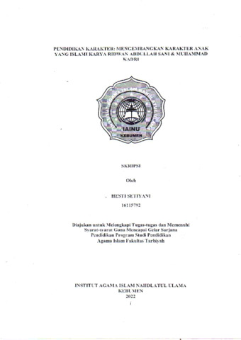 Hesti Setiyani, NIm. 16115792 (2022) Upaya Pembentukan Karakter Anak Perspektif Pendidikan Islam Dalam Keluarga. Other thesis, Institut Agama Islam Nahdlatul Ulama ( IAINU Kebumen).