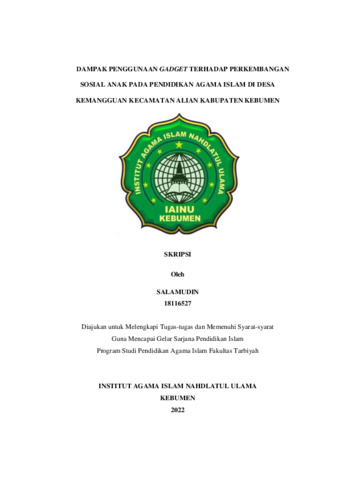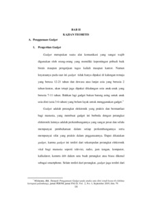 Latar belakng penenelitin ini berawal dari Perkembangan teknologi pada abad ke 21 yang terlihat sangat menonjol yang memiliki berbagai fitur khusus pada handphone, laptop, dan ipad. Gadget merupakan teknologi yang sangat populer sekarang ini, orang dewasa maupun anak-anak hampir semuanya menggunakan gadget, namun gadget juga berdampak pada perkembangan sosial anak terhadap pendidikan agama Islam. Penelitian ini meruapakan jenis penelitian kualitatif, dengan mengambil latar Desa Kemangguan Kecamatan Alian Kabupaten Kebumen. Pengumpulan data diambil dengan metode observasi, wawancara secara mendalam dan dokumentasi. Analisa validitas data dilakukan dengan teknik triangulasi, dimana data yang diperoleh dari hasil observasi, wawancara dan dokumentasi akan diuji kebenaranya. Analisis data dilakukan dengan menyeleksi dan menyusun data yang diperoleh, kemudian diolah dan dianalisis sehingga dapat ditarik kesimpulan. Kesimpulan dari penelitian ini adalah 1. Bentuk penggunaan gadget terhadap perkembangan sosial anak pada pendidikan agama islam di Desa Kemangguan Kecamatan Alian Kabupaten Kebumen. 1) Gadget membuat anak susah di atur oleh orang tua. 2) Gadget membuat anak kurang respon jika dipanggil orang tua. 3) Gadget membuat anak menjadi malas sholat. 4)Gadget membuat perkataan anak menjadi kurang sopan. 5) Gadget membuat perilaku/akhlak anak menjadi buruk. 6) Gadget membuat anak tidak peduli dengan lingkungan sekitar. 7) Gadget membuat anak menjadi kurang sopan dengan orang tua. 8) Gadget membuat anak menjadi kurang sopan dengan teman sebaya. 2. Dampak penggunaan gadget terhadap perkembangan sosial di Desa Kemangguan Kecamatan Alian Kabupaten Kebumen. 1) Gadget memiliki dampak negatif pada perkembangan sosial anak. 2) Gadget membuat perkembangan sosial anak terhambat. 3) Gadget mempengaruhi anak dalam berteman. 4) Gadget membuat anak kurang memiliki teman. 5) Gadget membuat anak tidak bisa membagi waktu bermain dengan temanya. 6) Gadget membuat anak kurang bersosialisasi dan kecanduan.