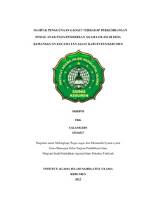 Salamudin, NIM. 18116527 and Bahrun Ali Murtopo, M.Pd.I., NIDN. 2116058201 and Rose Kusumaning Ratri, M.A., NIDN. 210718601 (2022) Dampak Penggunaan Gadget Terhadap Perkembangan Sosial Anak Pada Pendidikan Agama Islam di Desa Kemangguan Kecamatan Alian Kabupaten Kebumen. Other thesis, Institut Agama Islam Nahdlatul Ulama ( IAINU Kebumen).