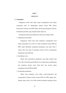 Hasil belajar siswa belum memadai, hal ini dibuktikan dengan hasil kondisi awal dengan nilai terendah 0 dan nilai tertinggi 100. Hal tersebut terjadi karena selama ini metode yang digunakan guru pada materi FPB dan KPK hanya menggunakan metode pohon faktor. Pada penelitian ini akan menggunakan metode tabel. Penelitian ini merupakan Penelitian Tindakan Kelas (PTK) yang bersifat deskritif kualitatif melalui sistem kolaboratif. Penelitian ini dilakukan dalam 2 siklus. Setiap siklusnya dilaksanakan 1 kali pertemuan. Metode yang digunakan dalam pengumpulan data adalah observasi, wawancara, tes dan dokumentasi. Pada siklus 1 terjadi penurunan dengan data yang diperoleh nilai rata-rata sebesar 61,42 dengan nilai tertinggi 100 terdapat 1 siswa dan nilai terendah 20 terdapat 1 siswa dengan ketuntasan belajar 50% dan yang tidak tuntas 50%. Sedangkanpada siklus II hasil yang dapat diperoleh nilai rata-rata sebesar 77,14 dengan nilai tertinggi 100 terdapat 1 siswa dan nilai terendah 30 terdapat 1 siswa dengan ketuntasan belajar 85,72% dan yang tidak tuntas 14,28%. Model tabel membantu siswa dalam memvisualisasikan dan mengorganisir informasi terkait konsep FPB dan KPK dengan jelas. Model tabel dapat menjadi alat yang efektif untuk meningkatkan hasil belajar matematika siswa kelas IV terkait dengan konsep FPB dan KPK.