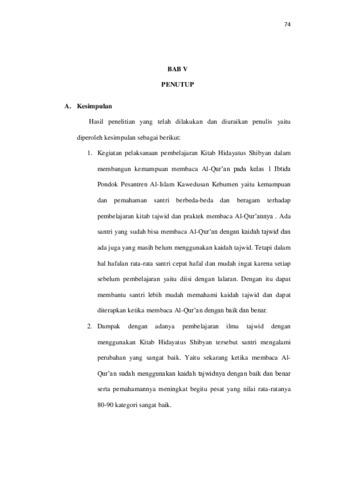 Kesadaran santri dalam membaca Al-Qur‟an dengan kaidah tajwid yang baik dan benar masih sangat miris sekali. Sehingga santri zaman sekarang masih ada yang belum bisa membaca Al-Qur‟an dan masih banyak yang belum membaca Al-Qur‟an dengan menerapkan kaidah tajwidnya. Untuk menjadikan manusia generasi qur‟ani, maka adanya pelaksanaan pembelajaran Kitab Hidayatus Shibyan dalam mendukung kemampuan bacaan Al-Qur‟an terhadap anak yang masih belum bisa membaca tentu mampu mendorong untuk bisa dan mampu membaca Al-Quran dengan menerapkan kaidah tajwid dengan benar dan baik. Dimana tujuan pembelajaran kitab tajwid ini untuk mengatasi hal santri yang kurang menerapkan ilmu tajwid dalam membaca Al-Qur‟an dan santri yang belum bisa membaca Al-Qur‟an. Penggunaan sumber belajar dalam mempelajari ilmu tajwid disesuaikan dengan tingkat pemahamnnya. Kitab Hidayatus Shibyan adalah kitab yang cocok diajarkan pada kelas pemula karena bentuknya nadzam dan isinya yang mudah untuk dipahami. Penelitian ini dilakukan dengan metode penelitian yang digunakan dalam penelitian ini yaitu metode kualitatif pendekatan deskriptif. Teknik pengumpulan data dalam penelitian ini melalui observasi, wawancara dan dokumentasi. Subjek dari penelitian ini yaitu para santri kelas 1 ibtida, pengasuh dan ustadz Pondok Pesantren Al-Islam Kawedusan. Teknik dalam pengelolaan data dilakukan dengan mereduksi data, penyajian data dan menarik kesimpulan dari analisis data yang diperoleh. Temuan penelitian yang didapat bahwa dampak pembelajaran tajwid dengan menggunakan Kitab hidayatus Shibyan dapat mendukung kemampuan bacaan Al-Qur‟an pada kelas 1 Ibtida Pondok Pesantren Al-Islam Kawedusan. Yaitu santri dapat membaca Al-Qur‟an dengan menerapkan kaidah tajwidnya dengan baik dan benar. Serta dalam pelaksanaan pembelajaran Kitab Hidayatus Shibyan dapat menghafal dan memahami dengan cepat karena adanya metode lalaran yang mana dilakukan dengan cara dilagukan syairnya, santri antusias dan semangat serta senang dalam melafalkan lalarannya.