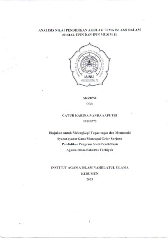 Catur Karina Nanda Saputri, NIM. 19116773 and Syifa Hamama, S.I.Kom., M.Si.., NIDN. 2116028603 (2023) Analisis Nilai Pendidikan Akhlak Islami Dalam Serial Upin dan Ipin Musim 11. Other thesis, Institut Agama Islam Nahdlatul Ulama ( IAINU Kebumen).