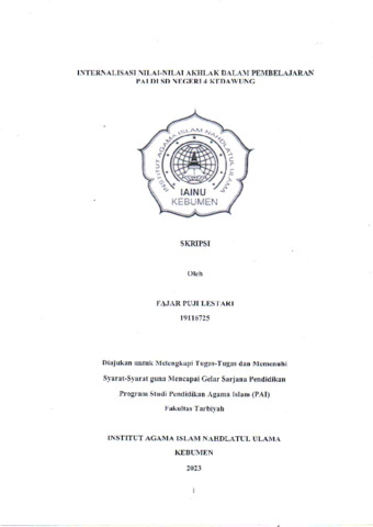 Fajar Puji Lestari, NIM. 19116725 and Fibriyan Irodati, M.Pd.I., NIDN. 2120029101 (2023) Internalisasi nilai-nilai akhlak dalam pembelajaran PAI di SD Negeri 4 Kedawung. Other thesis, Institut Agama Islam Nahdlatul Ulama ( IAINU Kebumen).