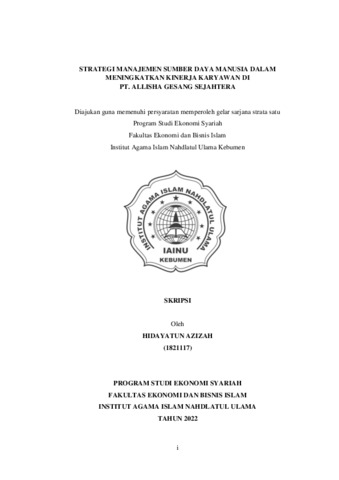 Hidayatun Azizah, NIM. 1821117 and Siti Ngatokoh, M.M., NIDN. 2107117001 and Muhammad Faiz Arrafi, M.E., NIDN. 2124059401 (2022) Strategi Pengelolaan Manajemen Sumber Daya Manusia dalam Meningkatkan Kinerja Karyawan di PT. Allisha Gesang Sejahtera. Other thesis, Institut Agama Islam Nahdlatul Ulama ( IAINU Kebumen).