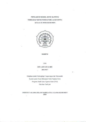 Siti Aisyah Lubis, NIM. 20117017 and Muna Fauziah, M.Pd., NIDN. 2130119501 (2024) Pengaruh Model Mind Mapping Terhadap Kemandirian Belajar Siswa Kelas IX MIBS Kebumen. Other thesis, Institut Agama Islam Nahdlatul Ulama ( IAINU Kebumen).