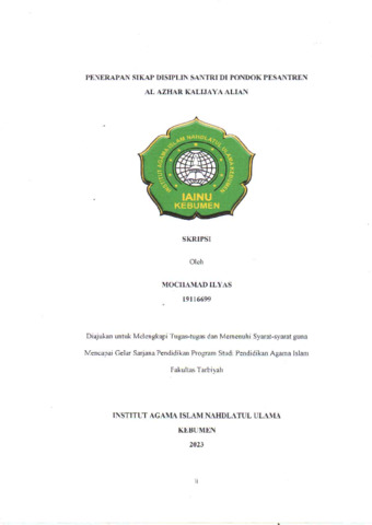 Mochamad Ilyas, NIM.19116699 (2023) Penerapan Sikap Disiplin Santri di Pondok Pesantren Al Azhar Kalijaya Alian Tahun 2023. Diploma thesis, IAINU Kebumen.