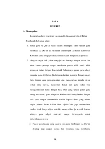 Al-Qur‟an sebagai petunjuk untuk umat islam guna kehidupan didunia juga ahkirat. Di Al-Qur‟an sudah dijelaskan mengenai perintah dan larangan juga tentang ilmu pengetahuan. Adapun keistimewaan dari Al-Qur‟an yaitu salah satunya jika yang membacanya dinilai ibadah. Dijelaskan dalam sabdanya Rasululloh yaitu: Barang siapa yang membaca satu huruf Al-Quran maka akan mendapatkan satu kebaikan, dan dari satu kebaikan itu akan berlipat menjadi sepuluh kebaikan. Aku tidak berkata alif lam mim sebagai satu huruf, namun alif satu huruf, lam satu huruf, mim satu huruf. Hadist diatas menjelaskan bahwasanya sebagai umat islam diperintahkan untuk membaca Al-Qur‟an, walaupun hanya satu huruf. Karena satu huruf membaca Al-Qur‟an itu sudah dinilai sebagai ibadah. Membaca Al-Qur‟an dengan baik dan benar itu sebuah kewajiaban. Karena jika membaca Al-Qur‟an tidak sesuai dengan panjang pendek maka akan mengubah makna dari ayat Al�Quran tersebut.Penelitian ini bertujuan untuk mengetahui peran guru Al-Qur‟an Hadist dalam penerapan ilmu tajwid sesuai makhorijul khuruf pada siswa kelas 8 di Mts Al-Falah Sumberadi Kebumen dan mengetahui faktor penghambat dan pendukung guru Al-Quran Hadist dalam mengajarkan mahkorijul huruf pada siswa kelas 8 di Mts Sumberadi Kebumen. Desain penelitian ini adalah deskripsi penelitian kualitatif. Subjek penelitian ini ialah guru Al-Qur‟an Hadist dan siswa kelas VIII A. Pengumpulan data mengunakan wawancara, observasi dan dokumentasi. Teknik analisis data menggunakan tiga komponen yaitu reduksi data, penyajian data dan penarikan kesimpulan. Hasil penelitian menunjukan bahwasanya guru Al-Qur‟an Hadist berperan penting untuk mengatasi siswa yang masih sulit untuk membaca Al-Qur‟an sesuai kaidah ilmu tajwid dan sesuai makhorijul huruf. Adapun faktor pendukungnya yaitu: adanya program bimbingan AL-Qur‟an, sarana prasarana dan fasilitas. Adapun Faktor penghambatnya yaitu: kurangnya bekal dari rumah dan faktor keluarga.