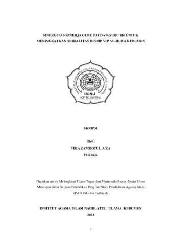Tika Zamrotul A’za, NIM. 19116634 and Dr. Eliyanto, M.Pd.I., NIDN. 2108058801 (2023) Sinergitas Kinerja Guru PAI dan guru BK untuk Meningkatkan Moralitas Siswa di SMP VIP Al-Huda Kebumen. Other thesis, Institut Agama Islam Nahdlatul Ulama ( IAINU Kebumen).