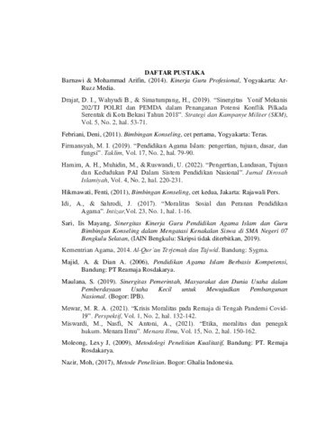 | Uncontrolled Keywords: | Sinergitas, Kinerja guru PAI dan guru BK, moralitas |