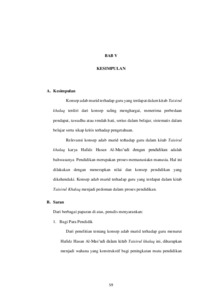 Tujuan penelitian adalah: (1) untuk mengetahui konsep adab murid terhadap guru dalam kitab Taisirul Khalaq; (2) untuk mengetahui bagaimana relevansi konsep adab murid terhadap guru dalam kitab Taisirul khalaq dengan pendidikan. Penelitian ini merupakan penelitian kepustakaan (library reseacrh). Metode yang digunakan dalam penelitian ini adalah metode kualitatif. Teknik pengumpulan data penelitian ini adalah dengan metode dokumentasi. Sumber primer merupakan kitab Taisirul Khalaq. Adapun sumber sekunder terdiri dari buku-buku lain yang berkaitan dengan topik penelitian. Analisis data yang digunakan adalah analisis deskriptif, yakni membaca, mengidentifikasi analisis dan penarikan kesimpulan. Berdasarkan hasil penelitian dapat disimpulkan bahwa: (1) konsep adab murid terhadap guru yang terdapat dalam kitab Taisirul Khalaq terdiri dari konsep saling menghargai, menerima perbedaan pendapat, tawadhu atau rendah hati, serius dalam belajar, sistematis dalam belajar serta sikap kritis terhadap pengetahuan.; (2) Pendidikan merupakan proses memanusiakn manusia. Hal ini dilakukan dengan menerapkan nilai dan konsep pendidikan yang dikehendaki. Konsep adab murid terhadap guru yang terdapat dalam kitab Taisirul Khalaq menjadi pedoman dalam proses pendidikan.