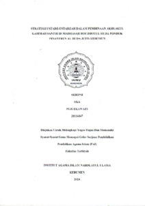 PUJI EKAWATI. 20116847. Strategi Ustadz-Ustadzah dalam Pembinaan Akhlakul Karimah Santri di Madrasah Roudhotul Huda Pondok Pesantren AlHuda Jetis Kebumen. Penelitian ini bertujuan untuk: 1) Mengetahui strategi Ustadz-Ustadzah dalam pembinaan akhlakul karimah santri di Madrasah Roudhotul Huda Pondok Pesantren Al-Huda Jetis Kebumen. 2) Mengetahui kendala yang Ustadz-Ustadzah