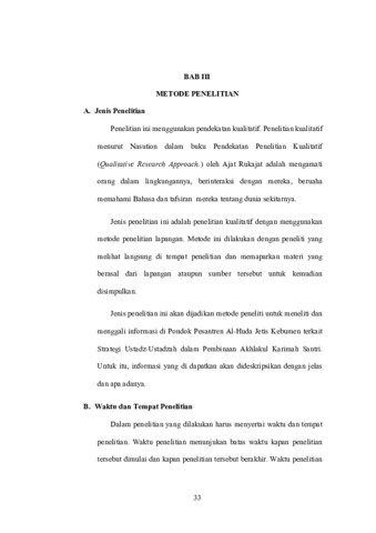 Penelitian ini menggunakan pendekatan kualitatif. Jenis penelitian ini adalah penelitian kualitatif dengan menggunakan metode penelitian lapangan. Dalam penelitian ini peneliti akan meneliti dan menggali informasi di Pondok Pesantren Al-Huda Jetis Kebumen terkait Strategi Ustadz-Ustadzah dalam Pembinaan Akhlakul Karimah Santri. Sifat penelitian ini adalah deskriptif. Teknik pengumpulan data yang digunakan dalam penelitian ini merupakan teknik