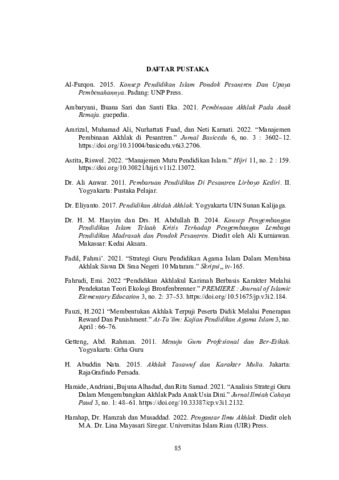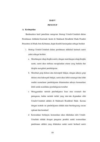 verifikasi. Hasil penelitian ini menunjukan bahwa strategi yang Ustadz-Ustadzah lakukan dalam pembinaan akhlakul karimah santri di Madrasah Roudlotul Huda Pondok