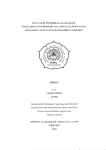 Fathus Sodiq, NIM. 2211001 and Dr. Eliyanto, M.Pd.I., NIDN. 2108058801 (2024) Peran Guru Pendidikan Agama Islam untuk Mengatasi Perilaku Bullying pada Siswa Kelas VIII di SMPN 3 Satu Atap Karangsambung Kebumen. Other thesis, Institut Agama Islam Nahdlatul Ulama ( IAINU Kebumen).