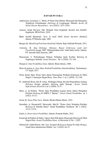 Tujuan Penelitian ini adalah: (1) untuk mengetahui peran guru pendidikan Agama Islam untuk mengatasi perilaku bullying pada siswa kelas VIII di SMPN 3 Satu Atap Karangsambung Kebumen. (2) untuk mengetahui bentuk-bentuk bullying yang dialami siswa kelas VIII di SMPN 3 Satu Atap Karangsambung Kebumen. (3) untuk mengetahui faktor penyebab bullying yang dilakukan siswa kelas VIII di SMPN 3 Satu Atap Karangsambung Kebumen. Penelitian ini mengadopsi pendekatan kualitatif dengan menggunakan teknik pengumpulan data melalui observasi, wawancara, dan dokumentasi. Subjek penelitian terdiri dari Kepala Sekolah, guru Pendidikan Agama Islam, dan siswa kelas VIII di SMPN 3 Satu Atap Karangsambung Kebumen. Analisis data dilakukan dengan teknik kondensasi, penyajian data, serta penarikan kesimpulan dan verifikasi. Hasil penelitian ini menunjukkan bahwa: (1) peran guru sangat vital dalam mengatasi bullying, dengan melatih siswa agar memiliki pengetahuan, keterampilan, dan akhlak yang baik. Guru berfungsi sebagai pendidik yang memberi nasihat dan sanksi bagi perilaku buruk, sebagai teladan yang menjaga tingkah laku dan memberikan contoh positif, serta sebagai pembimbing yang memberikan arahan dalam pembelajaran dan kegiatan sekolah. (2) Bentuk bullying yang terjadi di SMPN 3 Satu Atap Karangsambung meliputi menjewer teman, mengolok-olok, mengucilkan, dan mengejek. (3) Faktor penyebab bullying terdiri dari faktor individu, sekolah, dan lingkungan sosial.