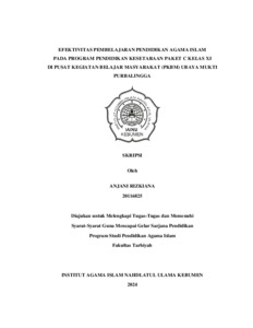 Anjani Rizkiana, NIM.20116825 (2024) Efektivitas Pembelajaran Pendidikan Agama Islam Pada Program Pendidikan Kesetaran Paket C Kelas XI Di Pusat Kegiatan Belajar Masyarakat (PKBM) Ubaya Mukti Purbalingga. Diploma thesis, IAINU Kebumen.
