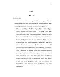 berjalan dengan baik dan kebermaknaan untuk mencapai tujuan pembelajaran yang telah direncanakan; (2) Didalam kegiatan pembelajaran Pendidikan Agama Islam kelas XI pada program pendidikan kesetaraan paket C di PKBM Ubaya Mukti