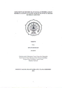 Isnaturosidah, NIM.20116873 (2024) Implementasi Metode Tilawah Dalam Pembelajaran Membaca Al-Qur‟an Santri Majelis Tilawah Al-Badar Bumirejo Kebumen. Diploma thesis, IAINU Kebumen.