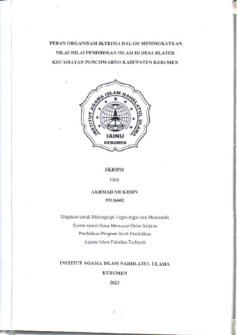 Akhmad Mukhsin, NIM. 19116602 and Nihayatul Husna, Lc., M.Hum., NIDN. 2122078703 (2023) Peran Organisasi Iktrima Dalam Meningkatkan Nilai-Nilai pendidikan Islam di desa Blater Kecamatan Poncowarno Kabupaten Kebumen. Other thesis, Institut Agama Islam Nahdlatul Ulama ( IAINU Kebumen).