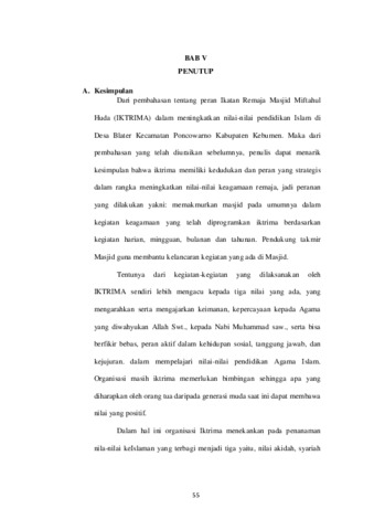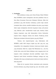 Skripsi ini tentang peran organisasi IKTRIMA dalam meningkatkan nilai�nilai pendidikan Islam di desa Blater Kecamatan Poncowarno Kabupaten Kebumen. Peran organisasi IKTRIMA yang dimaksudkan adalah peran organisasi dalam meningkatkan nilai-nilai pendidikan Islam sesuai dengan ajaran agama Islam dan diaplikasikan dalam kehidupan sehari-hari, yang pada dasarnya mempunyai tujuan pendidikan Islam yakni Akidah, Syariah dan Akhlak. Kegiatan keorganisasian yang terencana dan terkendali berhubungan dengan usaha untuk meningkatkan serta menyebarluaskan nilai-nilai pendidikan Islam di desa Blater Kecamatan Poncowarno Kabupaten Kebumen. Fokus masalah yang diteliti adalah 1) Bagaimana Upaya Organisasi IKTRIMA dalam meningkatkan nilai-nilai pendidikan Islam di desa Blater Kecamatan Poncowarno Kabupaten Kebumen 2) Bagaimana implementasi dari peningkatan nilai-nilai pendidikan Islam di desa Blater Kecamatan Poncowarno Kabupaten Kebumen. Tujuan dan kegunaan penelitian ini untuk mengetahui, mendeskripsikan upaya dan implementasi nilai-nilai pendidikan Islam di desa Blater Kecamatan Poncowarno Kabupaten Kebumen. Ditujukan juga kepada generasi penerus sebagai motivasi penyemangat dalam kegiatan keagamaan. Dapat dilihat upaya organisasi IKTRIMA dalam meningkatkan nilai-nilai Pendidikan Islam yang mencakup nilai Akidah, Syariah dan Akhlak. Metode penelitian ini menggunakan metode kualitatif deskriptif. Teknik pengumpulan data adalah, observasi, wawancara dan dokumentasi. Hasil penelitian didapatkan bahwa realitas peran organisasi IKTRIMA dalam meningkatkan nilai-nilai pendidikan Islam di desa Blater Kecamatan Poncowarno Kabupaten Kebumen berperan dalam membantu pemerintah dalam meningkatkan nilai-nilai Pendidikan Islam pada masyarakat. Hal tersebut dapat dilihat dari program kerja yang dilaksanakan serta manfaatnya. Program terlaksanakan yang berkaitan dengan akidah, syariah dan akhlak seperti kegiatan jimpitan, hadroh, hafalan sholat, rutinan maulid, santunan anak yatim/piatu, peduli bencana, kegiatan kuliah subuh, pengajian santri, ramadhan berkah dan peringatan hari besar Islam.