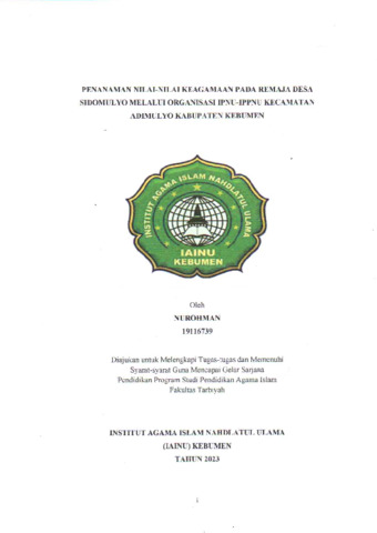 NUROHMAN, NIM. 19116739 and Abdul Waid,M.S.I., NIDN. 2116078202 (2023) Penanaman Nilai-Nilai Keagamaan pada Remaja Desa Sidomulyo melalui Organisasi IPNU-IPPNU Kecamatan Adimulyo Kabupaten Kebumen. Other thesis, Institut Agama Islam Nahdlatul Ulama ( IAINU Kebumen).
