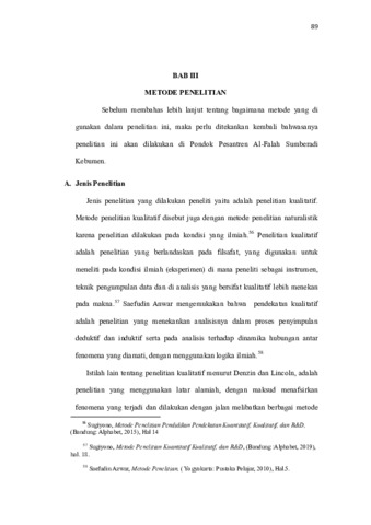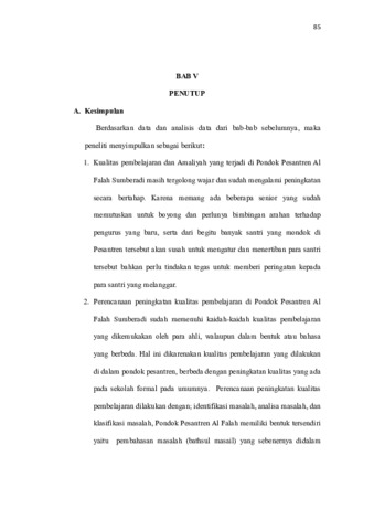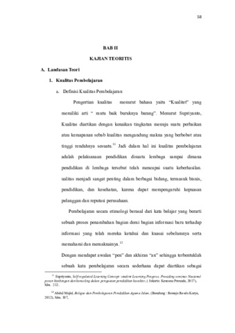 Islam. Penelitian ini berupa penelitian Kualitatif. Santri yang diteliti adalah santri dari Pondok Pesantren Al-Falah Sumberadi. Analisis data yang digunakan adalah reduksi data, penyajian data, dan penarikan kesimpulan. Berdasarkan hasil penelitian dapat disimpulkan Kualitas Pembelajaran