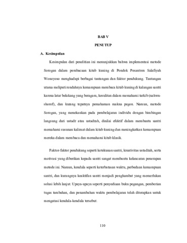 Aulia Khoirunnisa, NIM. 20116865 and Dr. Slamet Mujiono, S.Ag., M.Hum., NIDN. 2107076601 (2024) Implementasi Metode Sorogan dalam Pembacaan Kitab Kuning di Pondok Pesantren Salafiyah Wonoyoso. Other thesis, Institut Agama Islam Nahdlatul Ulama ( IAINU Kebumen).