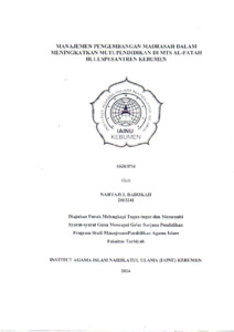 Nahtajul Barokah, NIM. 2013241 (2024) Manajemen Pengembangan Madrasah dalam Meningkatkan Mutu Pendidikan di MTs Al-Fatah Bulubpesantren Kebumen. Other thesis, Institut Agama Islam Nahdlatul Ulama ( IAINU Kebumen).