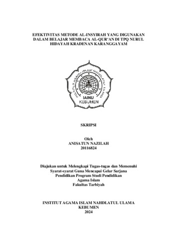 Anisatun Nazilah, NIM. 20116824 (2024) Efektivitas Metode Al-Insyirah yang Digunakan dalam Belajar Membaca Al-Qur’an di TPQ Nurul Hidayah Kradenan Karanggayam. Other thesis, Institut Agama Islam Nahdlatul Ulama ( IAINU Kebumen).